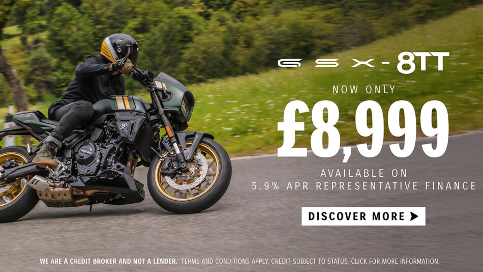 A headlight cowling that bears more than a passing resemblance to the famous GS1000 superbike and road-going GS1000S, plus a sporty seat and racy lower cowling, the 8TT draws heavy inspiration from Suzuki’s racing heritage.